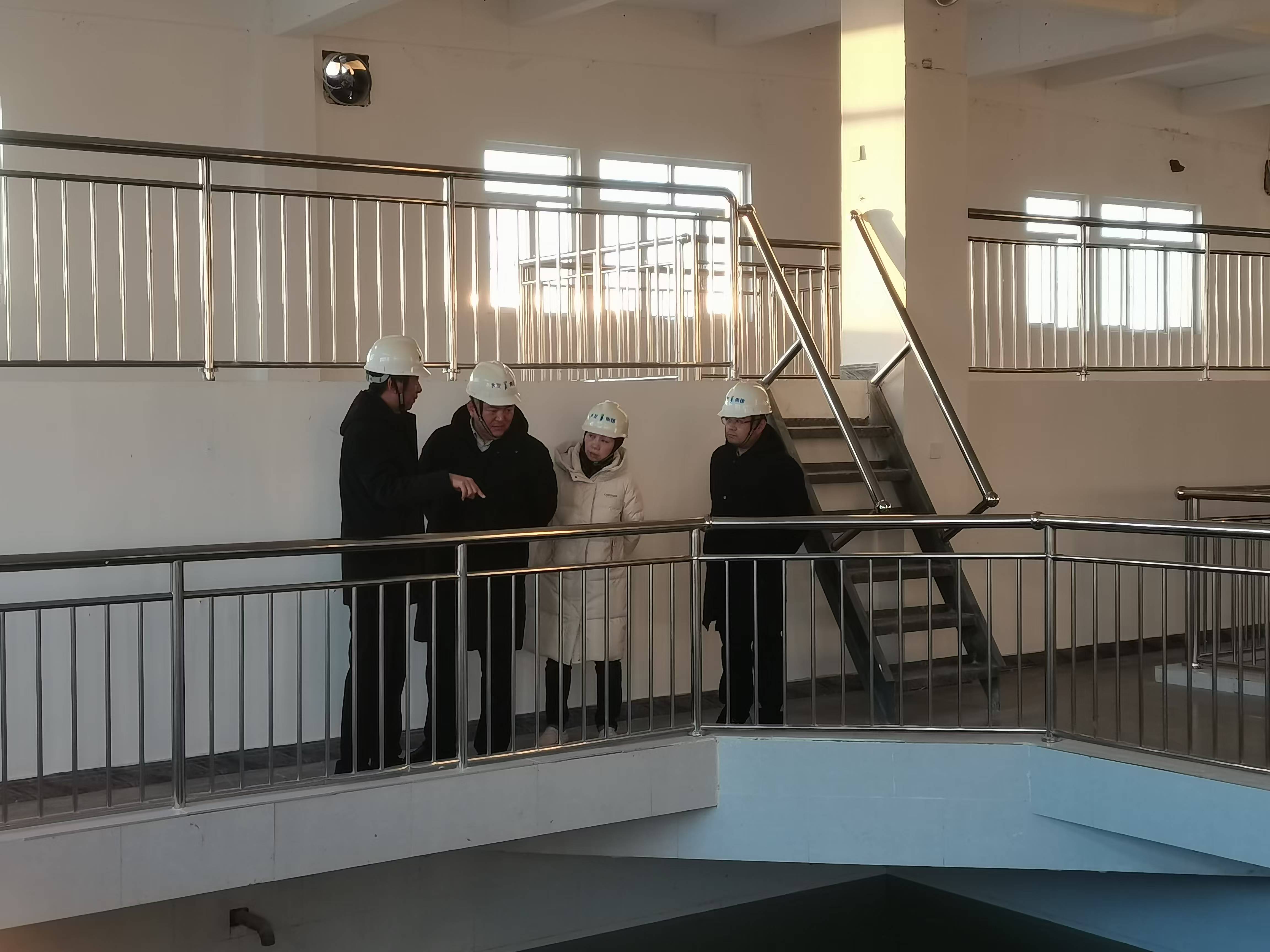 12月26日,水發(fā)集團(tuán)高級專家塵光,水發(fā)水控集團(tuán)黨委委員、副總經(jīng)理陳宇瑾到威海市南海新區(qū)凈水廠項目施工現(xiàn)場開展調(diào)研工作。