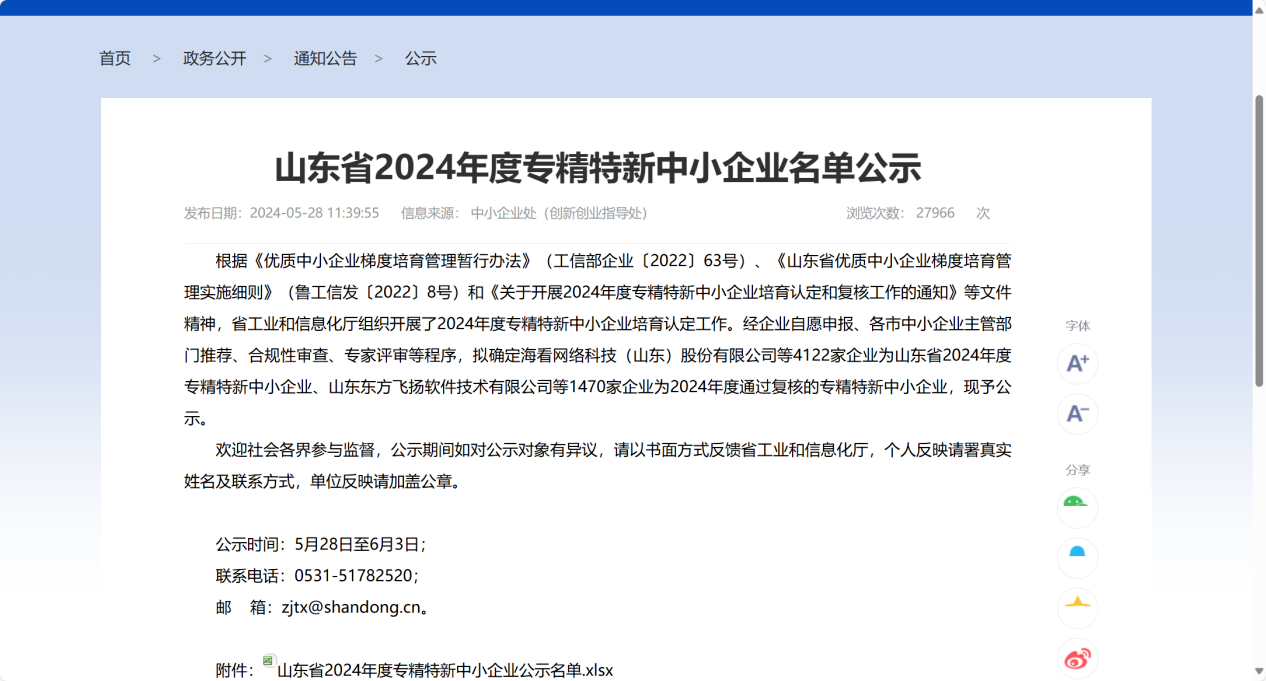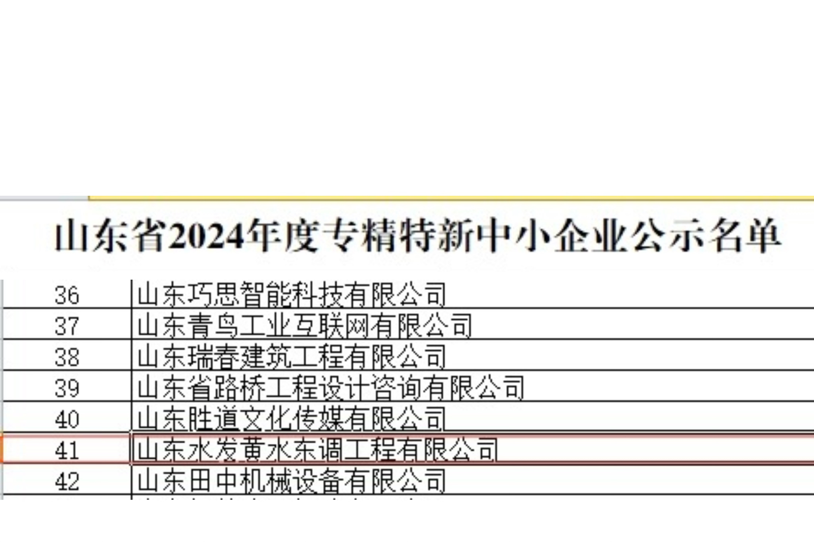 近日,山東省工業(yè)和信息化廳公示了山東省2024年度專精特新中小企業(yè)名單。經(jīng)自評申報(bào)、市級審核推薦、省級專家評審等程序,山東水發(fā)黃水東調(diào)工程有限公司進(jìn)入公示名單,順利通過山東省2024年度專精特新中小企業(yè)認(rèn)定。