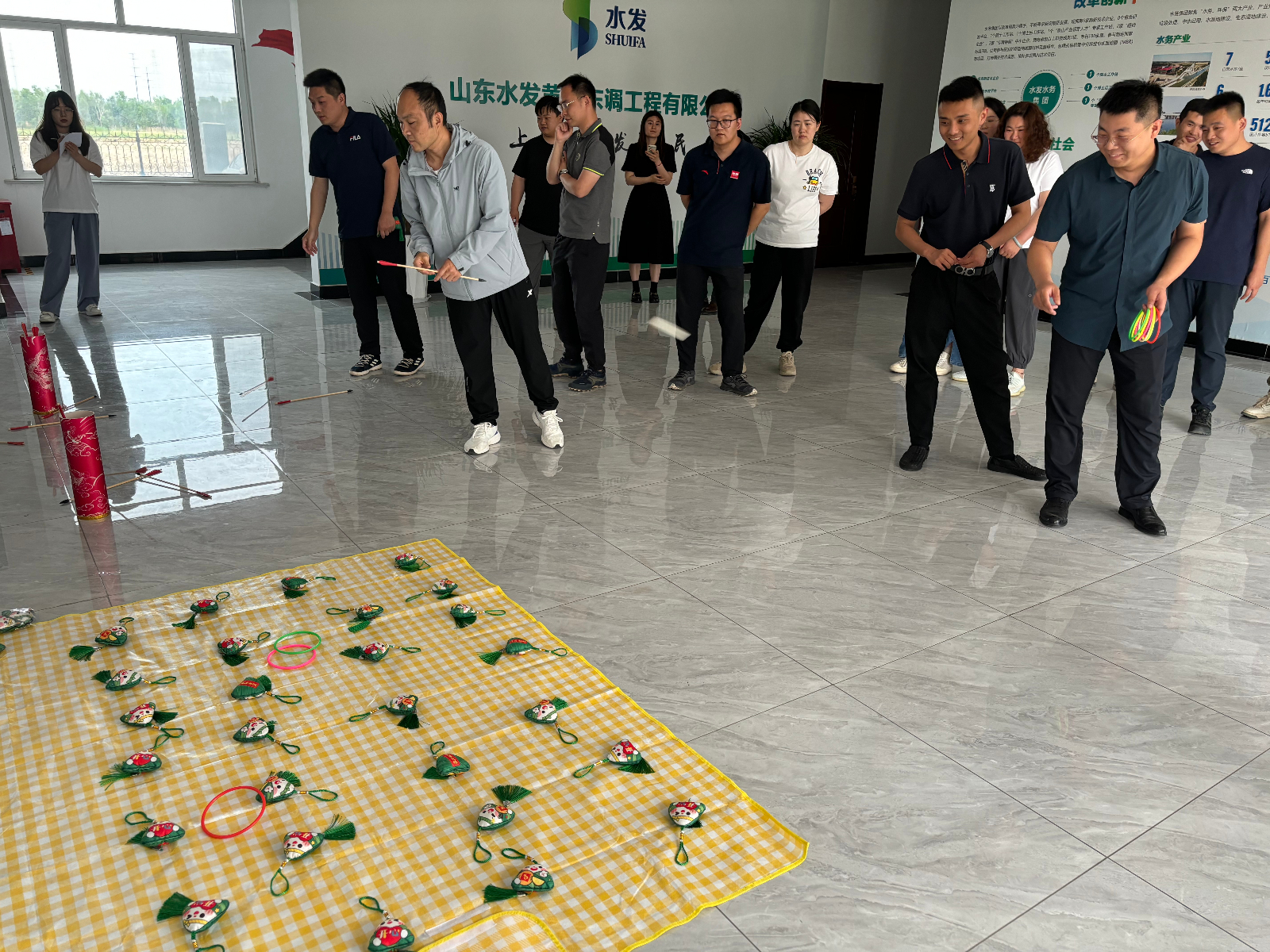 本次端午節(jié)活動分為游戲互動和包粽子環(huán)節(jié)。活動現(xiàn)場歡聲笑語不絕于耳,投壺比賽激起了參與者們的熱情,每人有八次投壺機(jī)會,大家站在規(guī)定的投擲線后,專注投擲,場面熱鬧有趣。緊接著是套粽子比賽,大家摩拳擦掌,爭取每一次套中粽子香包的機(jī)會,盡情釋放節(jié)日的喜悅與活力。