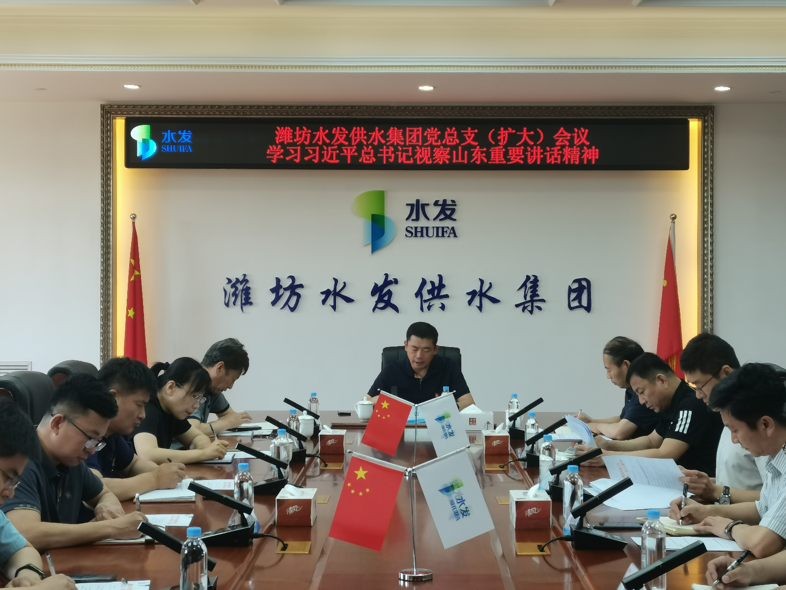 5月28日,濰坊水發(fā)供水集團(tuán)黨總支召開擴(kuò)大會(huì)議,傳達(dá)學(xué)習(xí)習(xí)近平總書記視察山東重要講話重要指示精神,認(rèn)真落實(shí)水發(fā)集團(tuán)黨委、水發(fā)水控集團(tuán)黨委理論學(xué)習(xí)中心組專題會(huì)議部署要求,研究貫徹落實(shí)意見。供水集團(tuán)黨總支委員、領(lǐng)導(dǎo)班子、中層以上黨員干部參加會(huì)議。